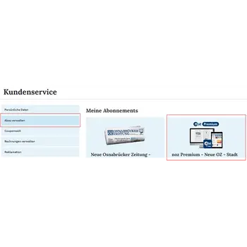 2. Navigieren Sie zum Bereich "Abos verwalten" und wählen Sie Ihr noz Premium-Abonnement aus.