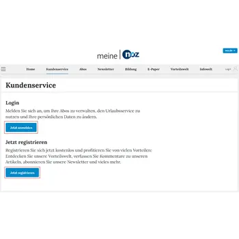 1. Besuchen Sie noz.de/kundenservice und loggen Sie sich mit Ihren bestehenden Zugangsdaten ein oder registrieren Sie sich neu.